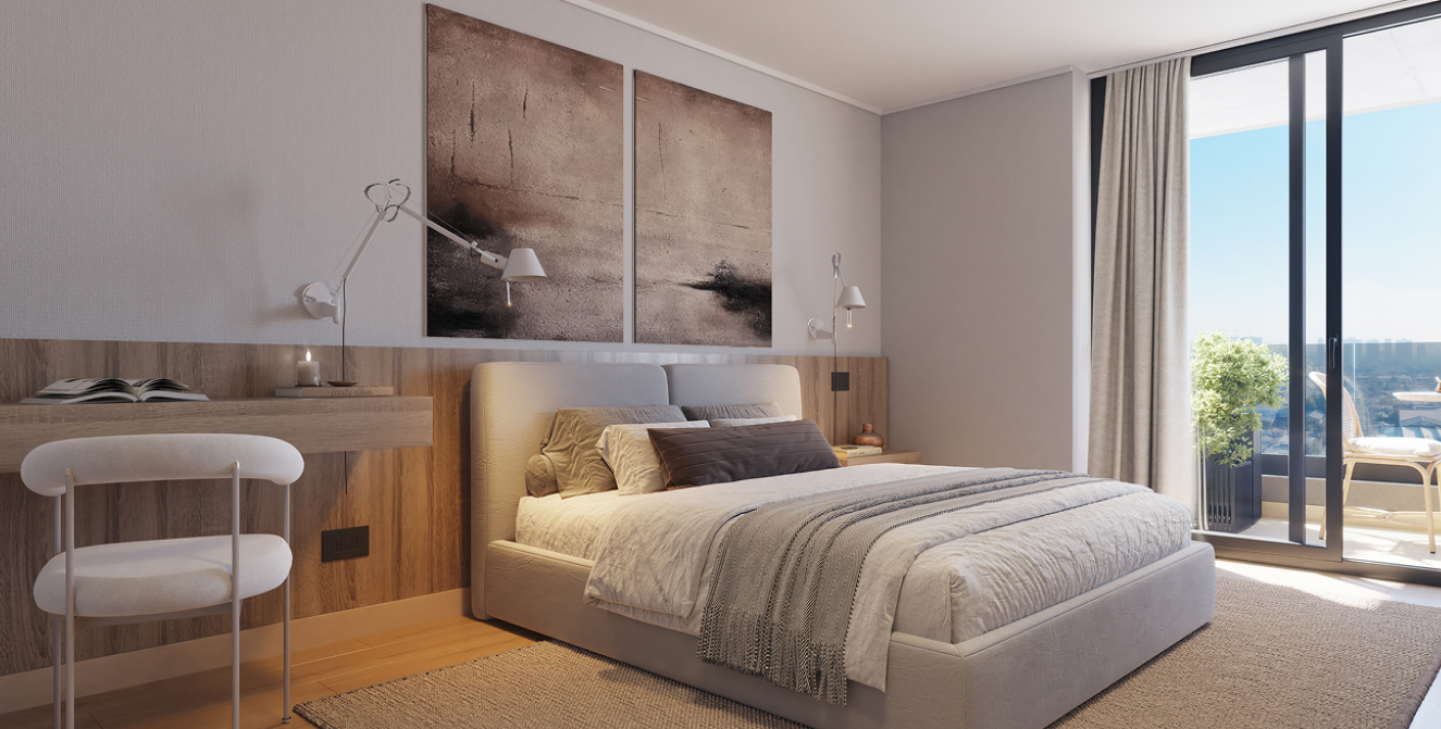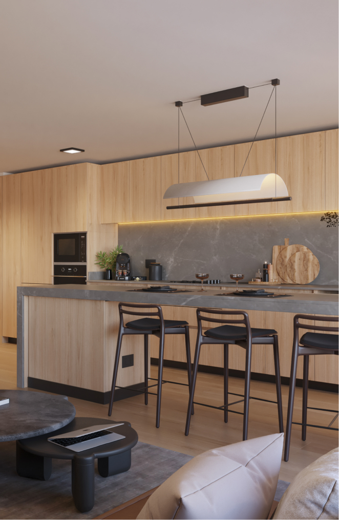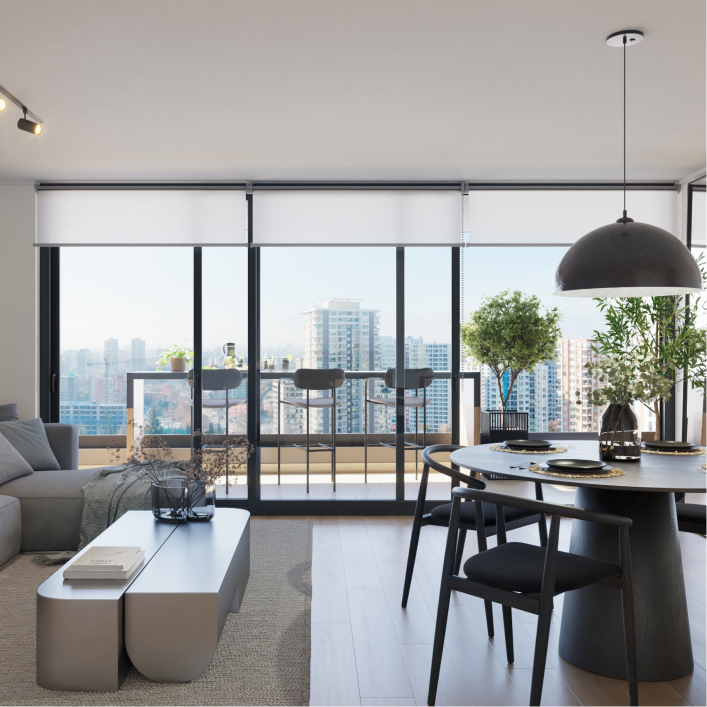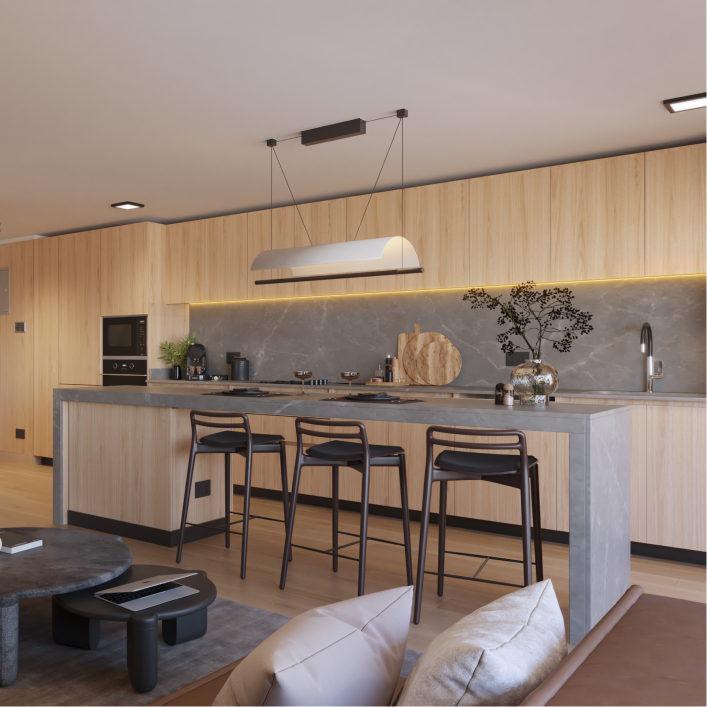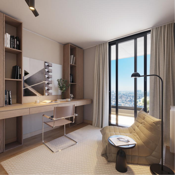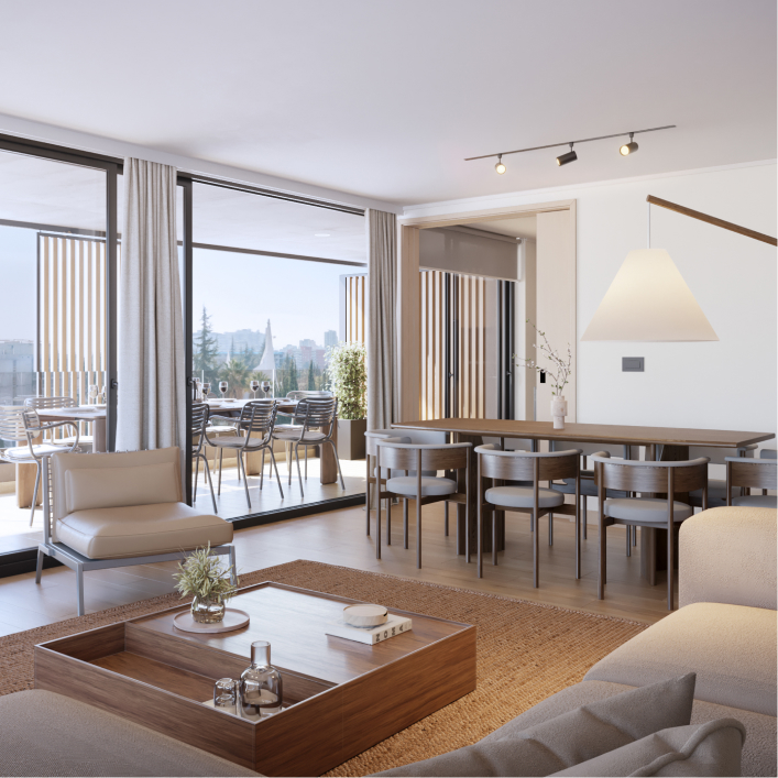 Minimalismo que invita a respirar. Inspirados en Japandi, los interiores combinan materiales nobles, texturas naturales y un diseño limpio que silencia lo superfluo y potencia el bienestar. Con logia independiente y almacenamiento extra, todo se ordena de forma natural para darte calma día a día y mantener su valor.