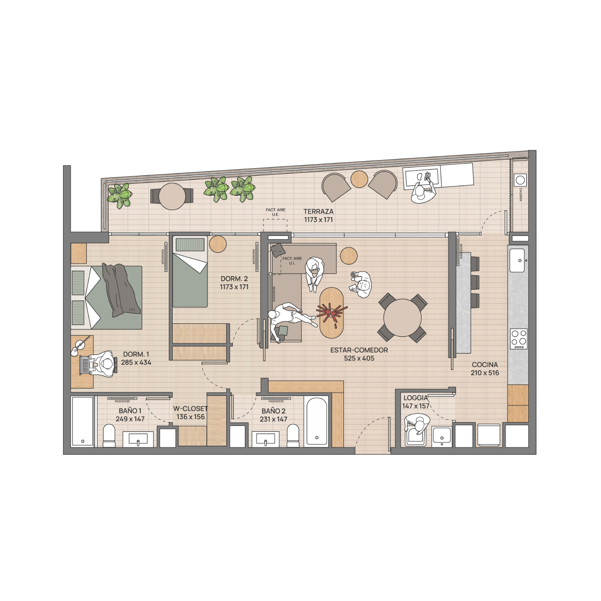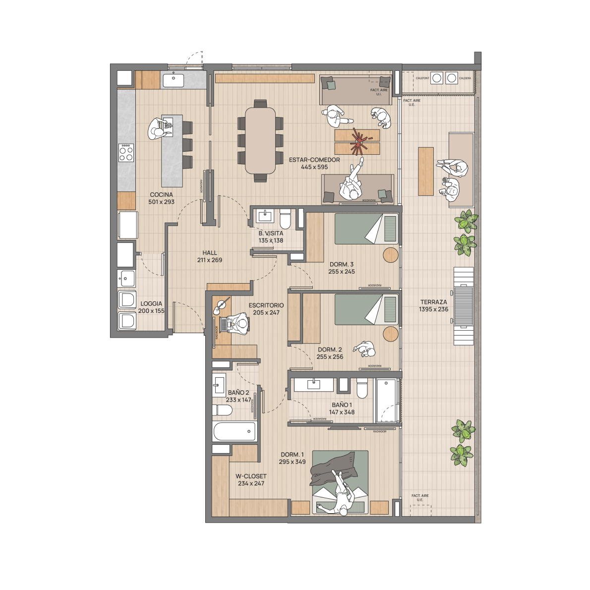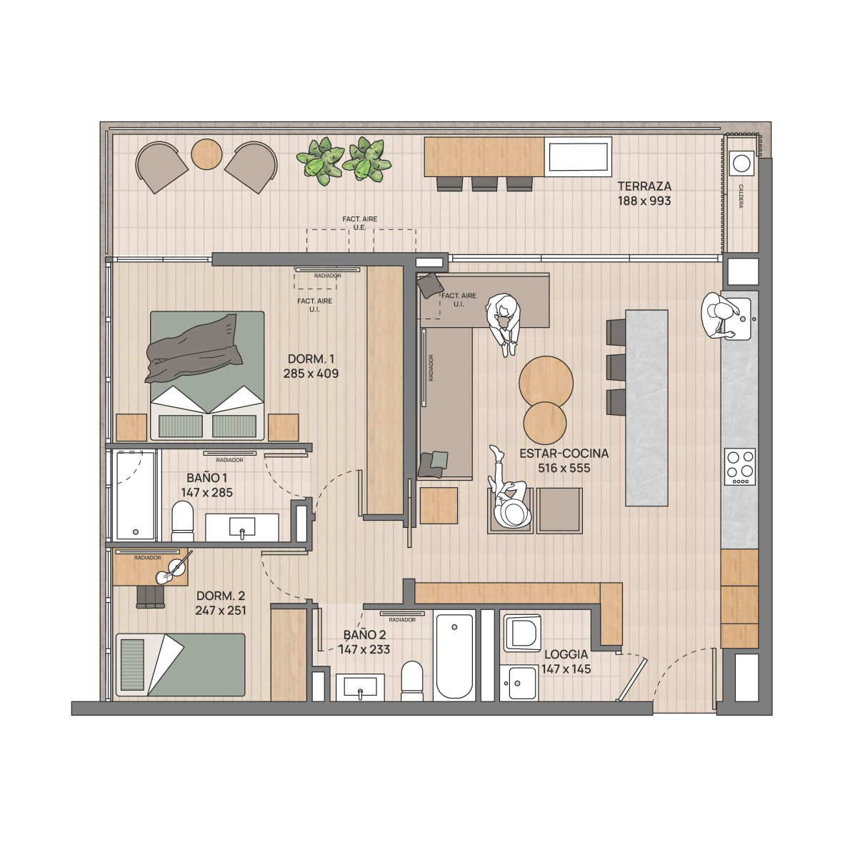 Minimalismo que invita a respirar. Inspirados en Japandi, los interiores combinan materiales nobles, texturas naturales y un diseño limpio que silencia lo superfluo y potencia el bienestar. Con logia independiente y almacenamiento extra, todo se ordena de forma natural para darte calma día a día y mantener su valor.