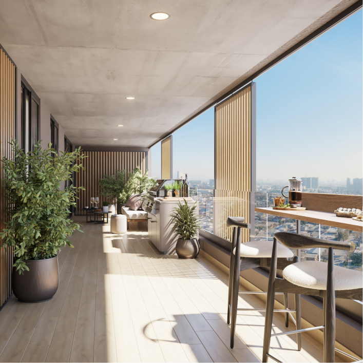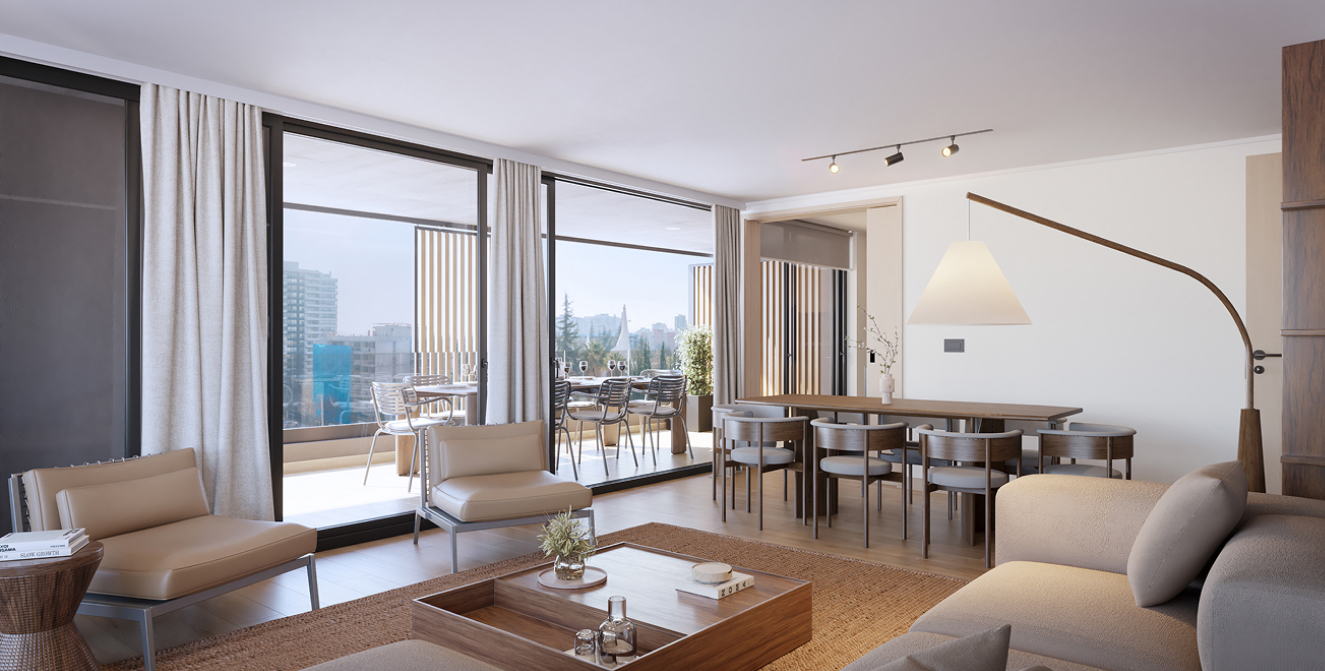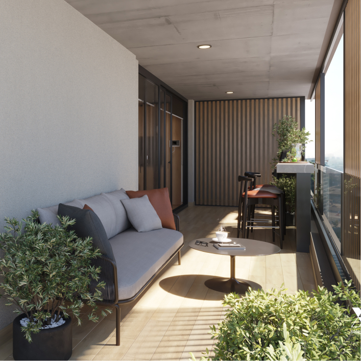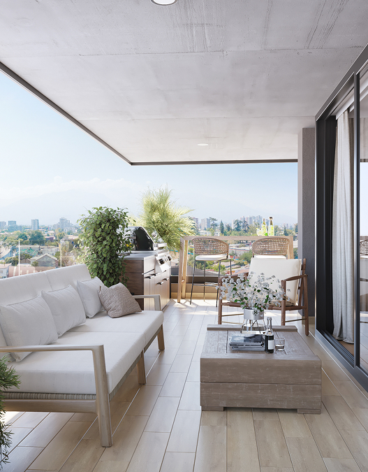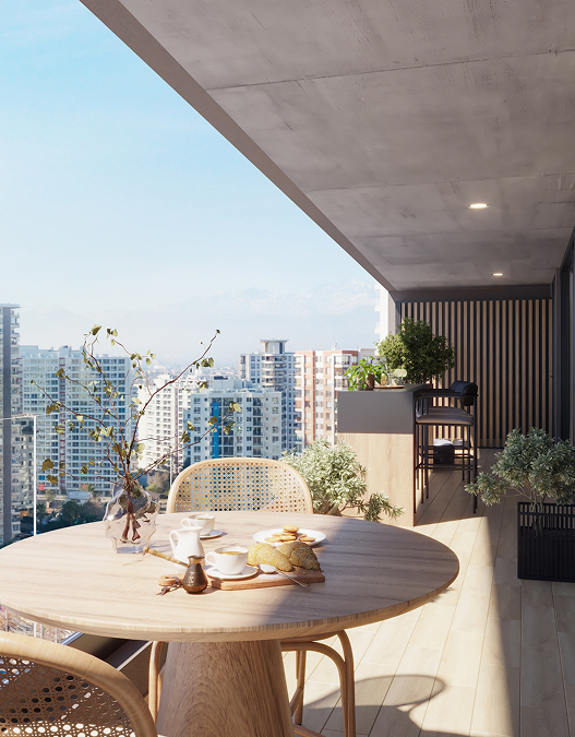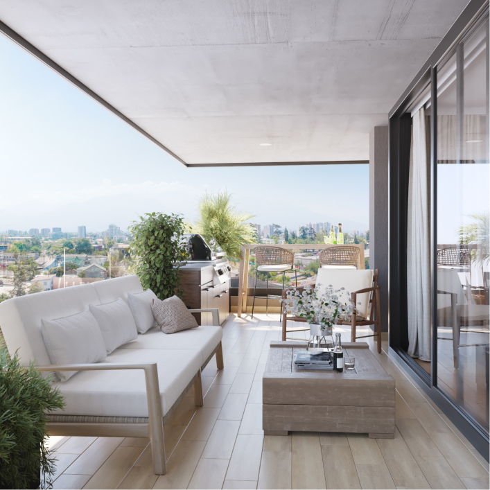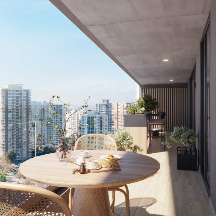 Las terrazas de Almagro Balance no son un simple complemento: son protagonistas de tu hogar. Diseñadas en formato XL y conectadas de manera fluida con el living apaisado, se convierten en verdaderos espacios sociales para compartir con tu familia, amigos o incluso disfrutar de un momento a solas. Allí puedes relajarte con tu mascota, organizar una comida al aire libre o simplemente disfrutar de la naturaleza en tu depto. Son la extensión natural de tu departamento y el escenario perfecto para que la vida suceda con más calma y libertad.