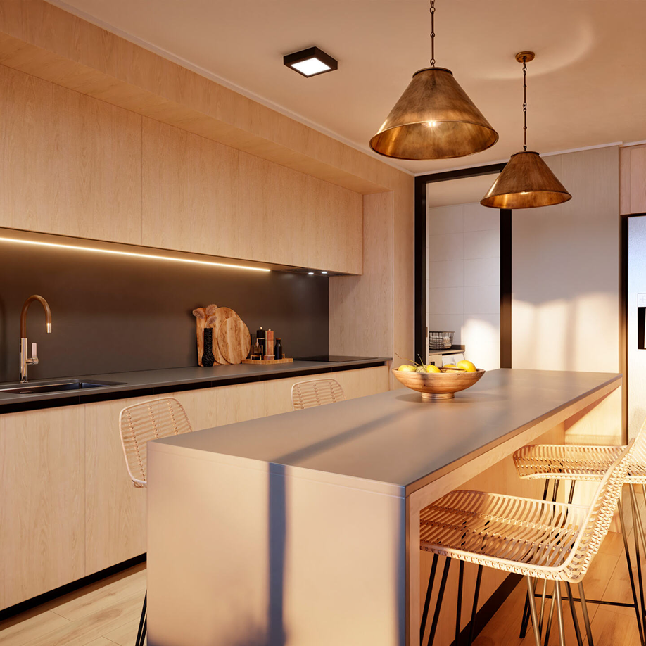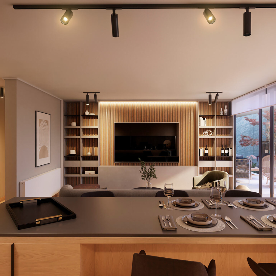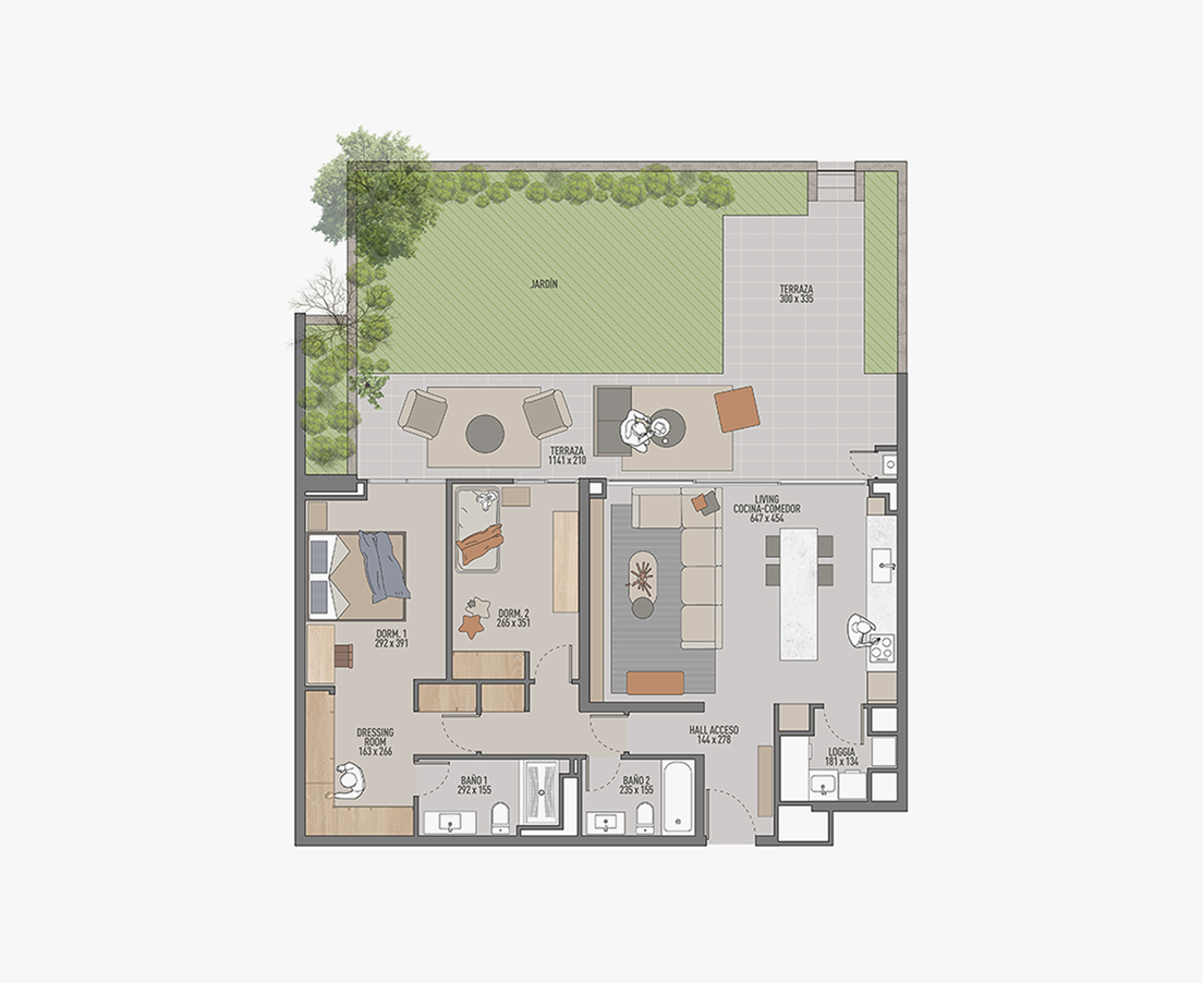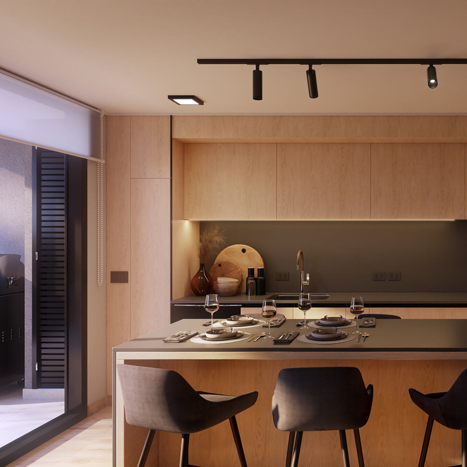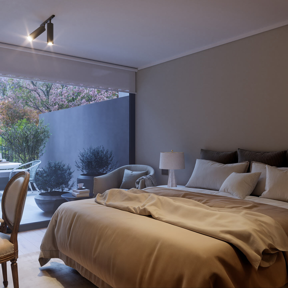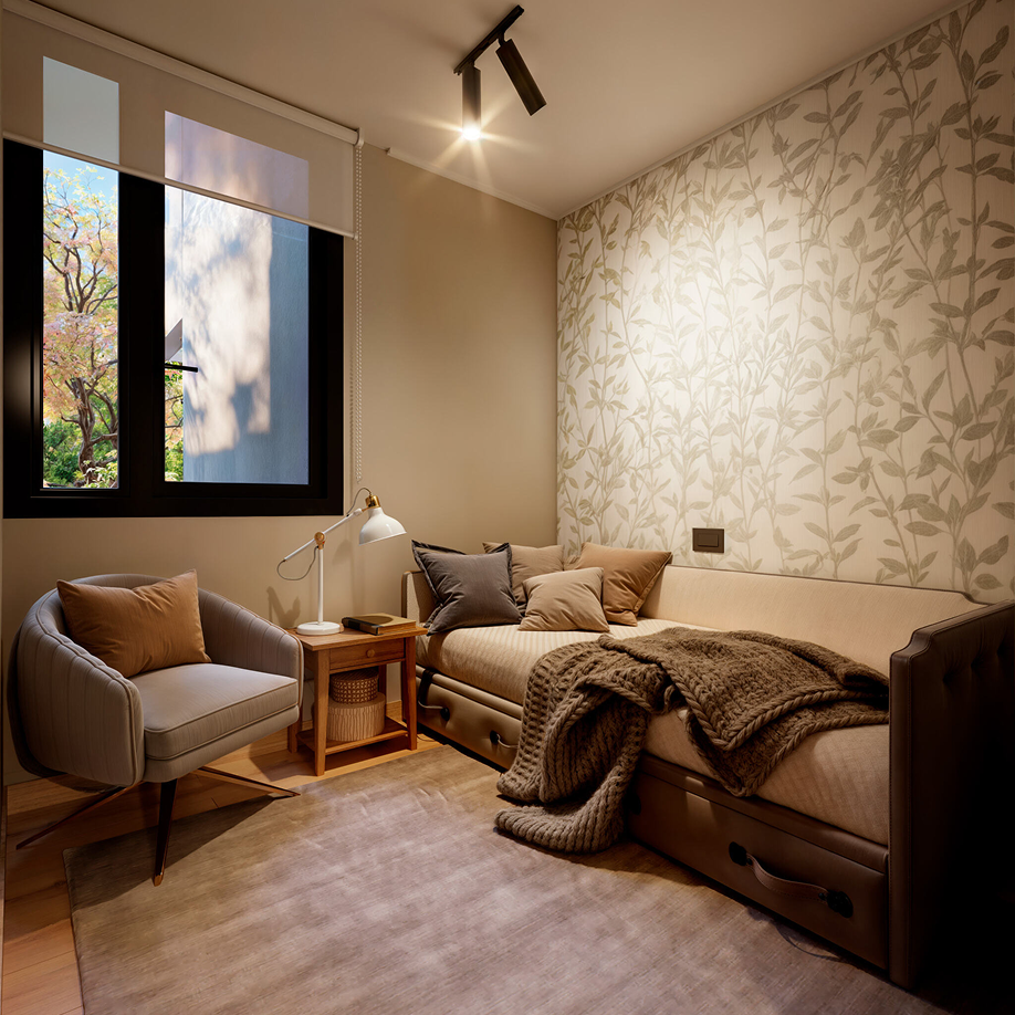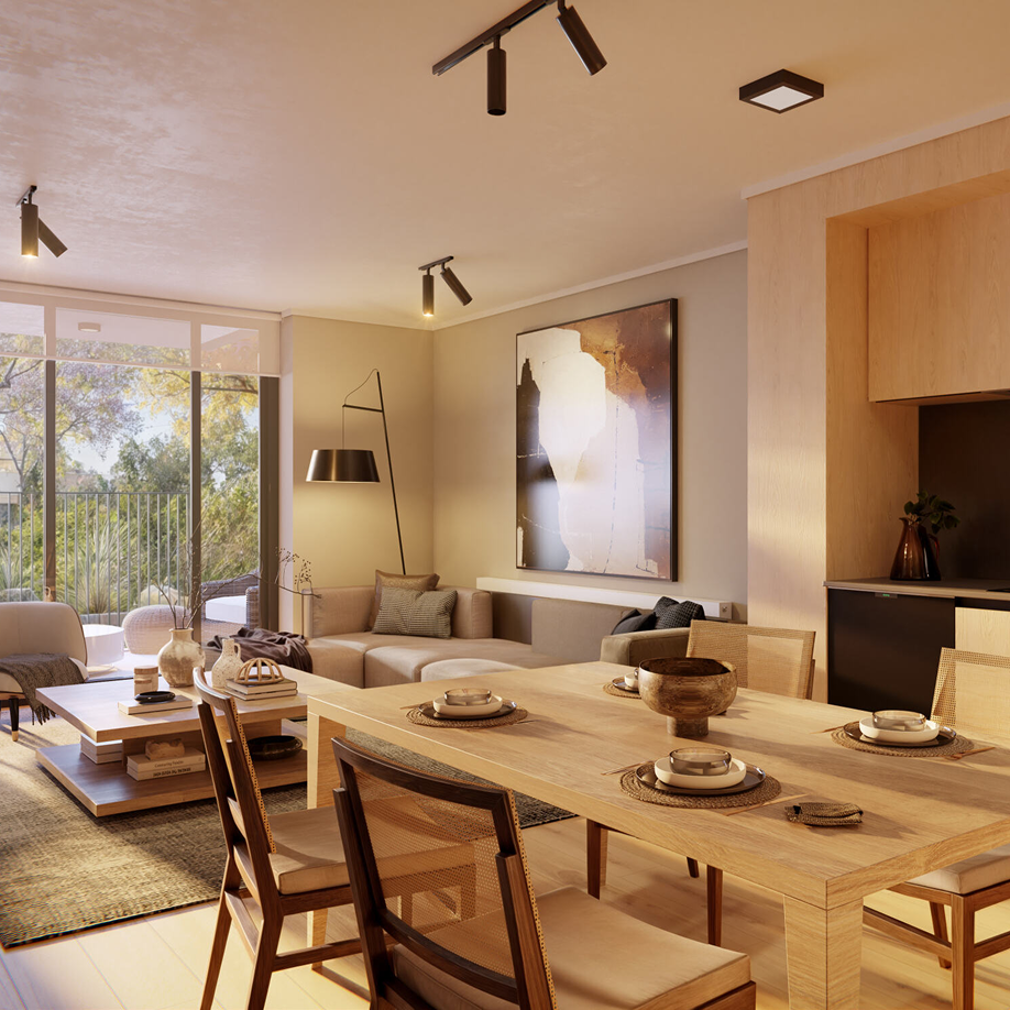En Los Cactus, tu privacidad es primordial. Tu departamento no es solo un lugar para vivir, es tu santuario personal, diseñado meticulosamente para tu tranquilidad. Desde la arquitectura que te resguarda del exterior hasta el acogedor patio interior, cada detalle está pensado para brindarte calma y seguridad, incluso el hall de entrada que separa los espacios sociales de los privados de tu departamento.