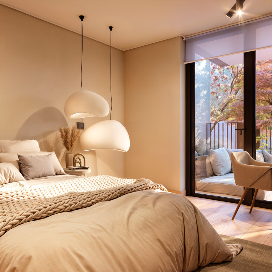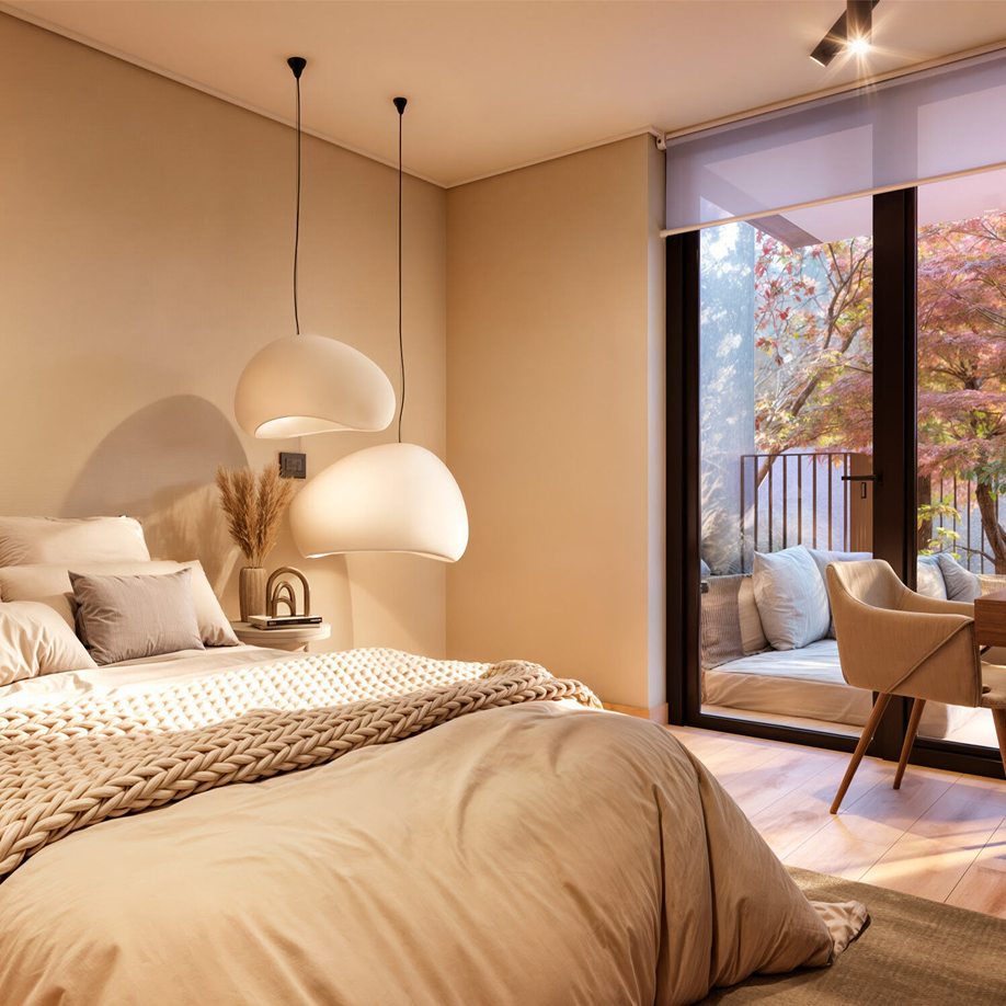 Si prefieres mantener un espacio independiente y privado, hemos diseñado una tipología con dos amplios dormitorios